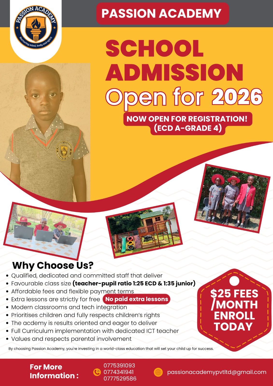 Passion Academy is a private college offering quality education to both primary and secondary learners. We are committed to nurturing the complete child through a comprehensive educational approach that follows the Zimbabwean curriculum.